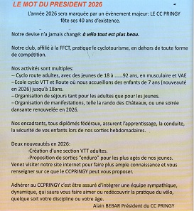 LE DEBUT DE LA 40 è SAISON AU CYCLO CLUB DE PRINGY
