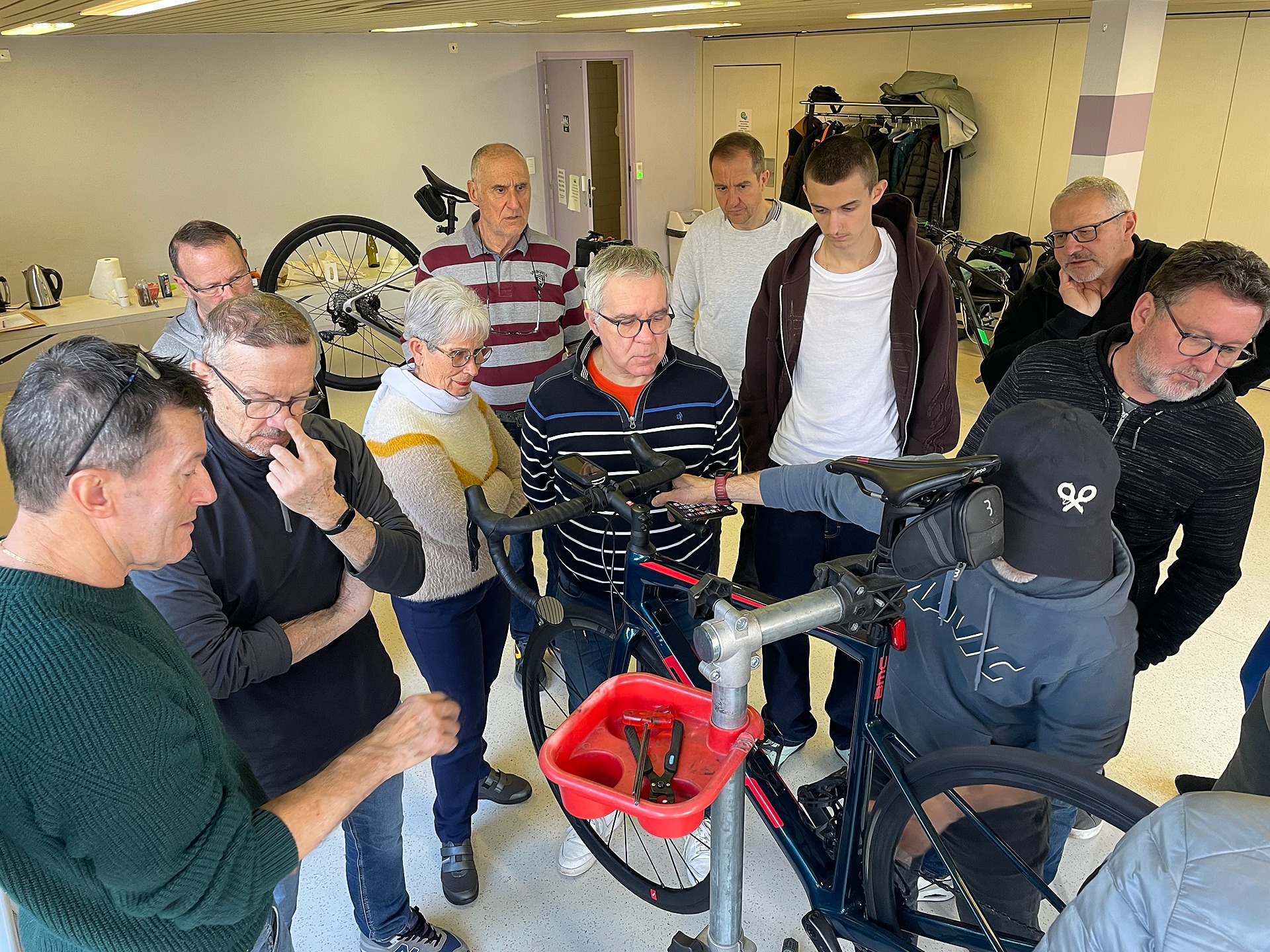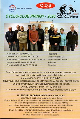 Bernard MORIN (Animation VTT)-Olivier BEAUBOIS (Vice Président VTT)-Jean Pierre COLOMBIER (Vice-Président Secrétaire)-Sandrine HALLEY (Responsable sécurité adjointe et VTT)-Alain BÉBAR (Président)-Christian DAGHÉ (Responsable Sécurité)-Florence COHENDET (Com tenues)-Éric LAVOREL (Responsable Parcours Route)-Jack MICHELON (Trésorier adjoint)-Chantal SAGE (Secrétaire adjointe)-Jacques MORT (Trésorier)